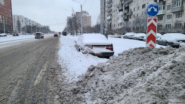 Подобную картину можно наблюдать и на Светлановском проспекте, где от уборки коммунальщиков пострадали припаркованные машины.