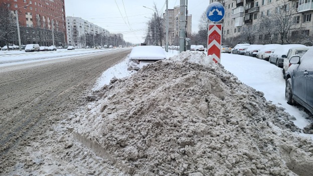 Снегопад продолжается в Петербурге седьмой день подряд. При этом уборка города оставляет желать лучшего – на улицах скапливаются огромные кучи неубранных осадков.