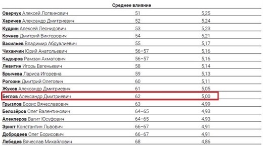 По мнению ряда СМИ, Беглов оказался в аутсайдерах из-за того, что многие планы Смольного не могут достойно воплотиться в жизнь. Так, петербургских чиновников критикуют за то, что те не смогли внедрить новую систему работы с ТКО в городскую инфраструктуру. Из-за этого многие городские дворы оказались завалены мусором.