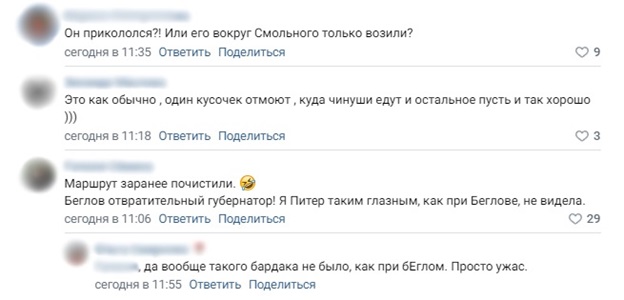 Этот рассказ удивил петербуржцев. Они предположили, что президента Белоруссии катали исключительно вокруг Смольного. Другие написали, что, скорее всего, перед кортежем Лукашенко ехала вся уборочная техника, что есть в городе.